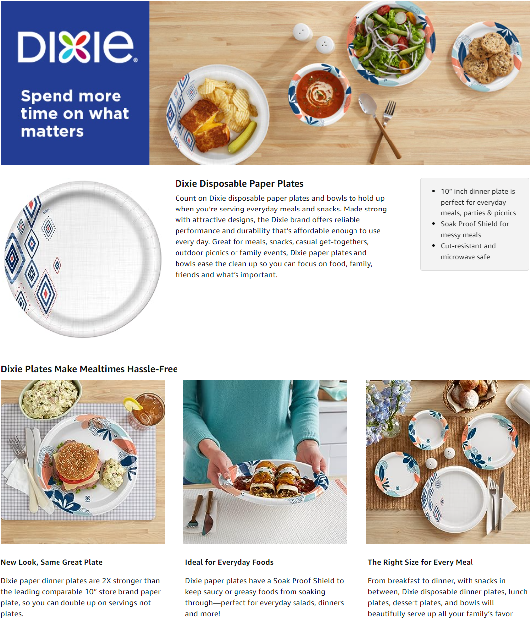 • NEW LOOK, SAME GREAT PLATE. Dixie Paper Plates have a new design while keeping the same strength to make mealtime hassle-free.