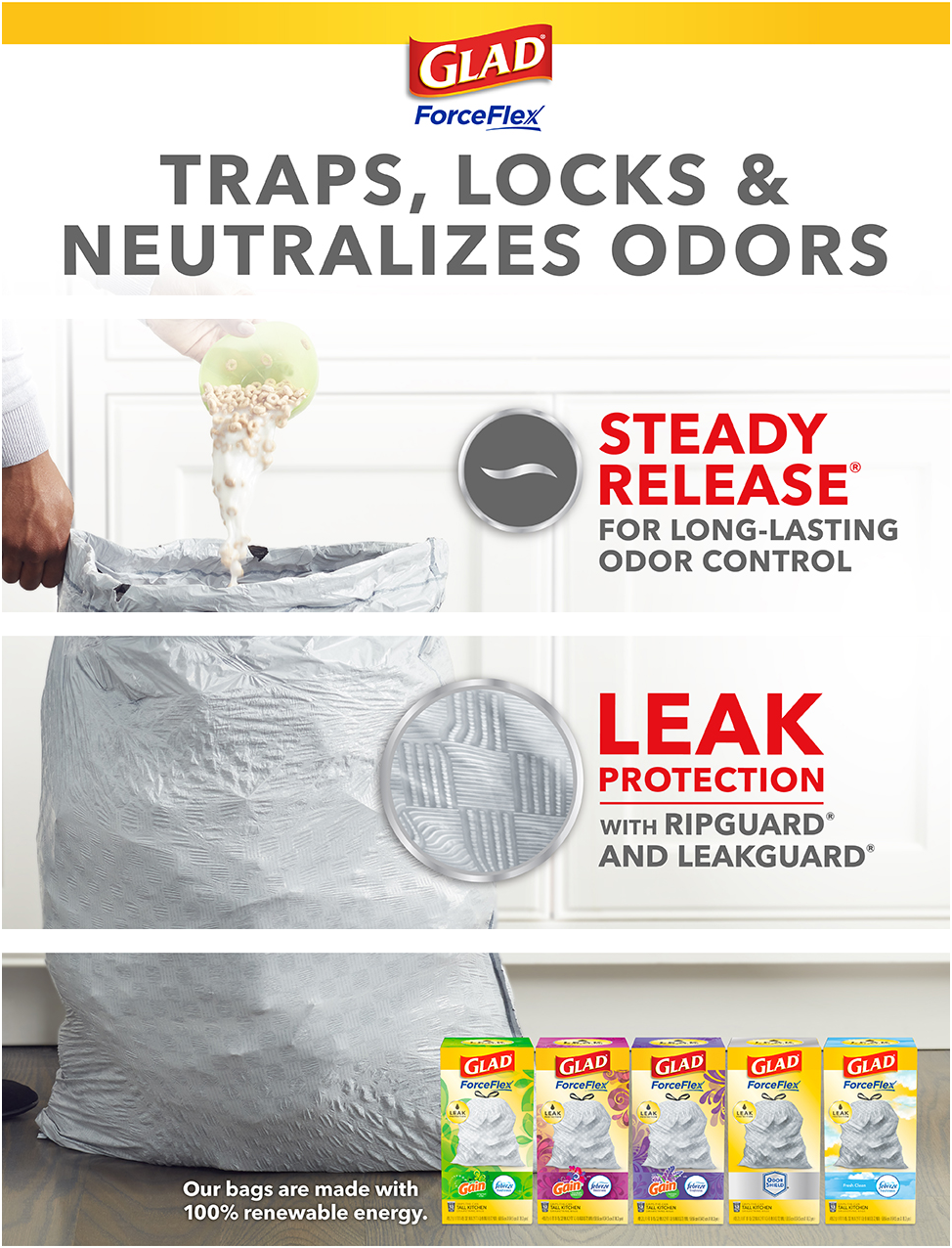 - 13 gallon plastic trash BAGS: Glad tall kitchen drawstring trash bags with stretchable strength, traps, locks and neutralizes odors to keep your kitchen smelling fresh with a gain original Scent
