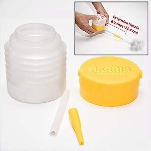 Use the Harris powder duster with extension nozzle for application of food grade diatomaceous earth. Once filled, screw the cap on tight and turn the duster upside down. Keep powder as dry as possible, as it will clump and not puff properly if wet. Also, be careful not to fill the duster to much when first starting out to prevent clogging.