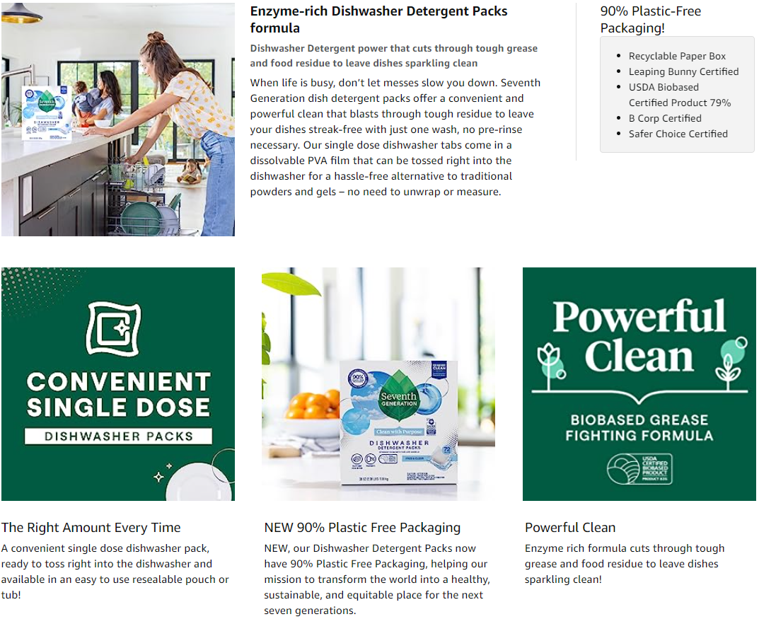 - Caring today for the next seven generations with Seventh Generation dishwasher detergent pods