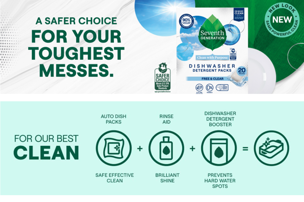 - Seventh Generation Free & Clear Dishwasher Detergent Packs have an enzyme-rich formula that cuts through tough grease and food residue to leave dishes sparkling clean