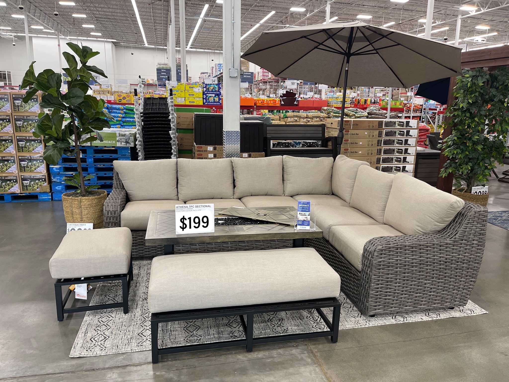 Introducing the Member's Mark Athena 7-Piece Sectional with Firepit, a timeless piece that combines clean lines and sophisticated curves to create a luxurious oasis for your outdoor space. Artfully crafted with heavy-duty, corrosion-resistant, powder-coated steel frames, this sectional is wrapped in hand-woven all-weather resin wicker in a neutral hue to complement any décor.Comfort and Quality