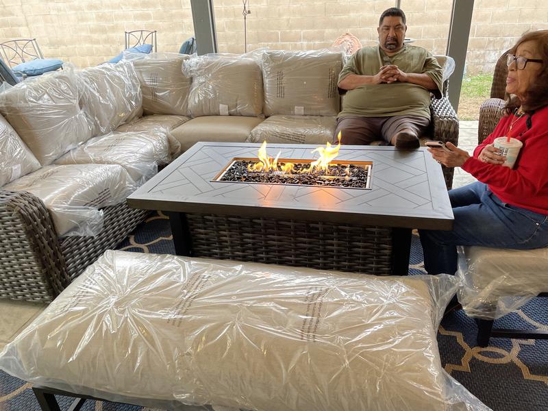 Additional Inclusions: The package also includes a 1-piece custom furniture cover made from recycled content, clips to attach the sectional seats, black fire glass beads, a matching burner lid, and the natural gas orifice.