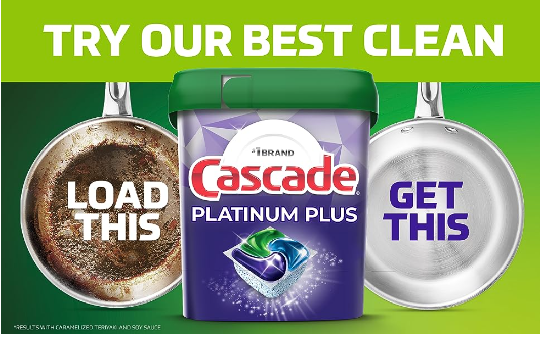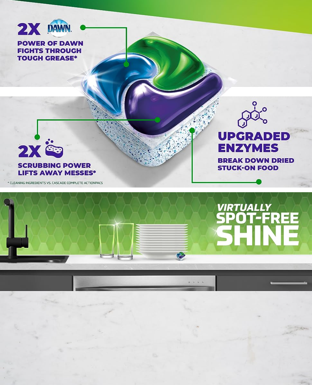 - Cascade Platinum Plus contains 2X* the Dawn grease fighting power and 2X* the scrubbing power to power through dried on food *Cleaning ingredients vs Cascade Complete ActionPacs